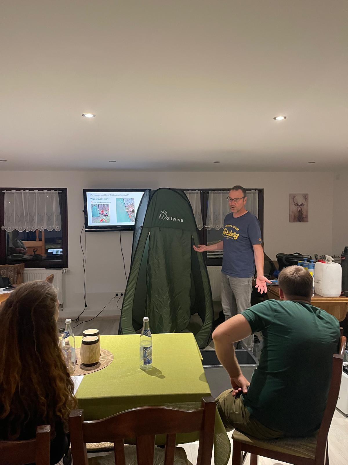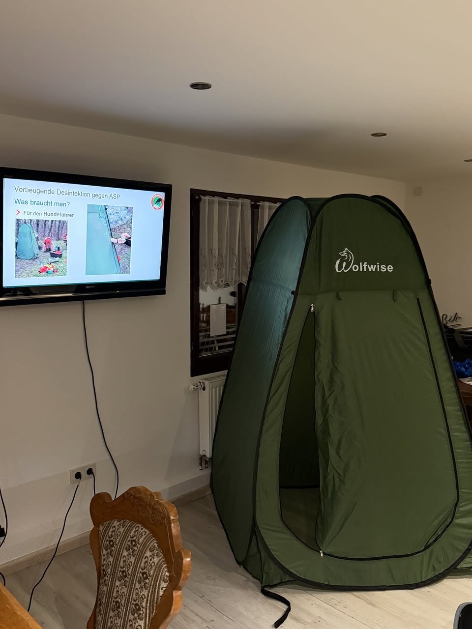 Zum Abschluss gab’s noch eine mündliche Prüfung durch den anwesenden Amtsveterinär zum Thema Desinfektion & ASP, sowie eine praktische Einheit zum Aufbau und Einsatz der mobilen Desinfektionsanlage.