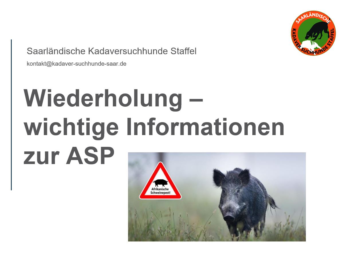 Eindrücke der Ausbildungskurse zum ASP Suchhund bei der saarländischen ASP Suchhundstaffel.